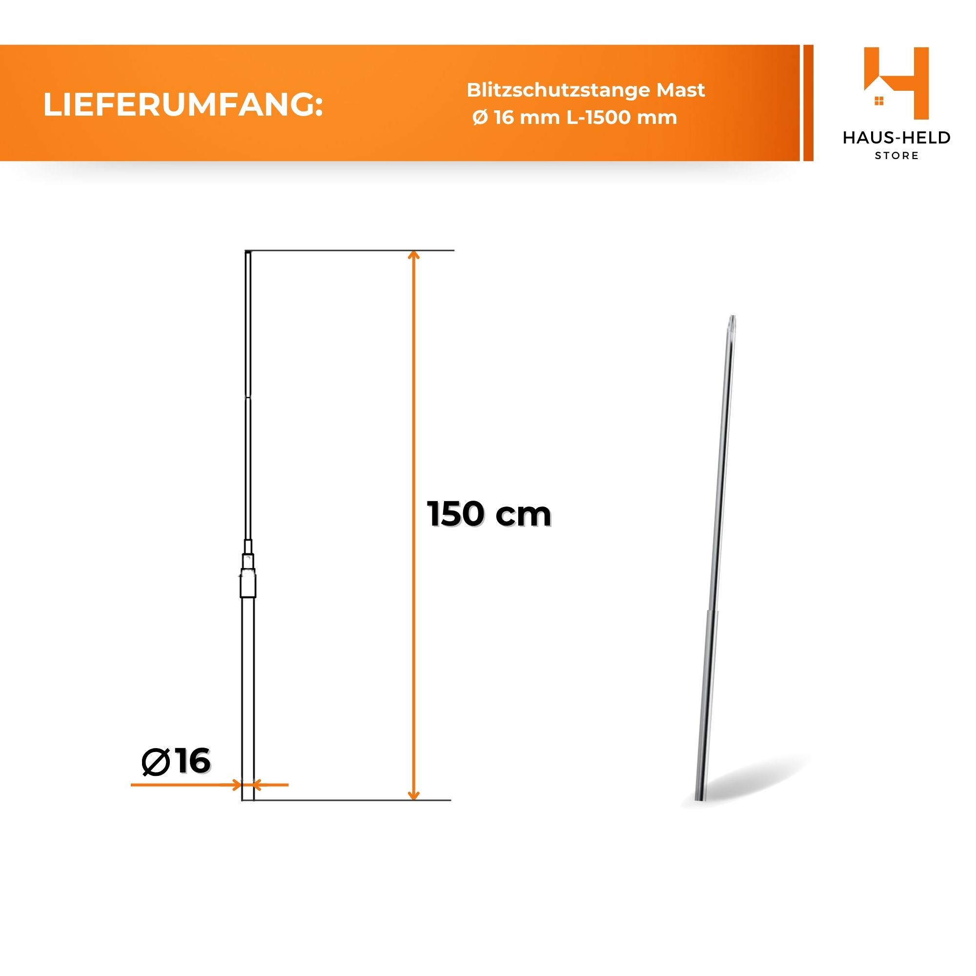 Ein wirksamer Blitzschutz beginnt mit richtig ausgewählten Blitzableiterelementen. Der Blitzableitermast ermöglicht die sichere Aufnahme der Blitzenergie und deren Ableitung zum Erdungssystem.
