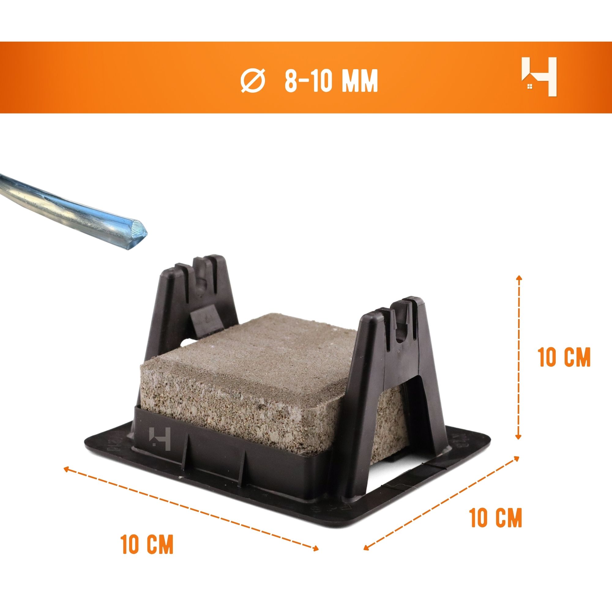 Halterung mit Beton für Draht mit einem Durchmesser von 8-10 mm