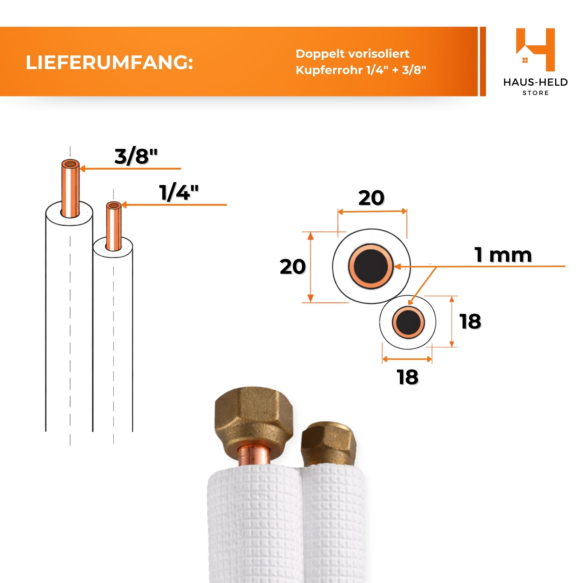 Hochwertiges doppeltes Kupferrohr mit Ummantelung für Split- und Multisplit-Klimaanlagen. Das Produkt ist mit Muffen versehen, wodurch es sich bequem montieren lässt und eine schnellere Verbindung mit der Klimaanlage ermöglicht.