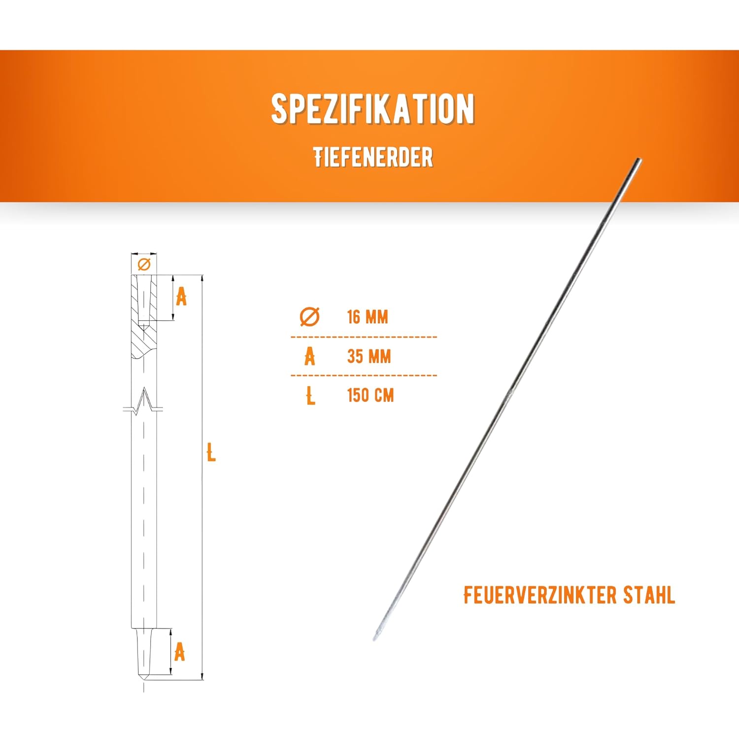 Entscheiden Sie sich für einen verzinkten Erdungsstab 16 mm - eine bewährte Lösung für eine zuverlässige Installation zum besten Preis.