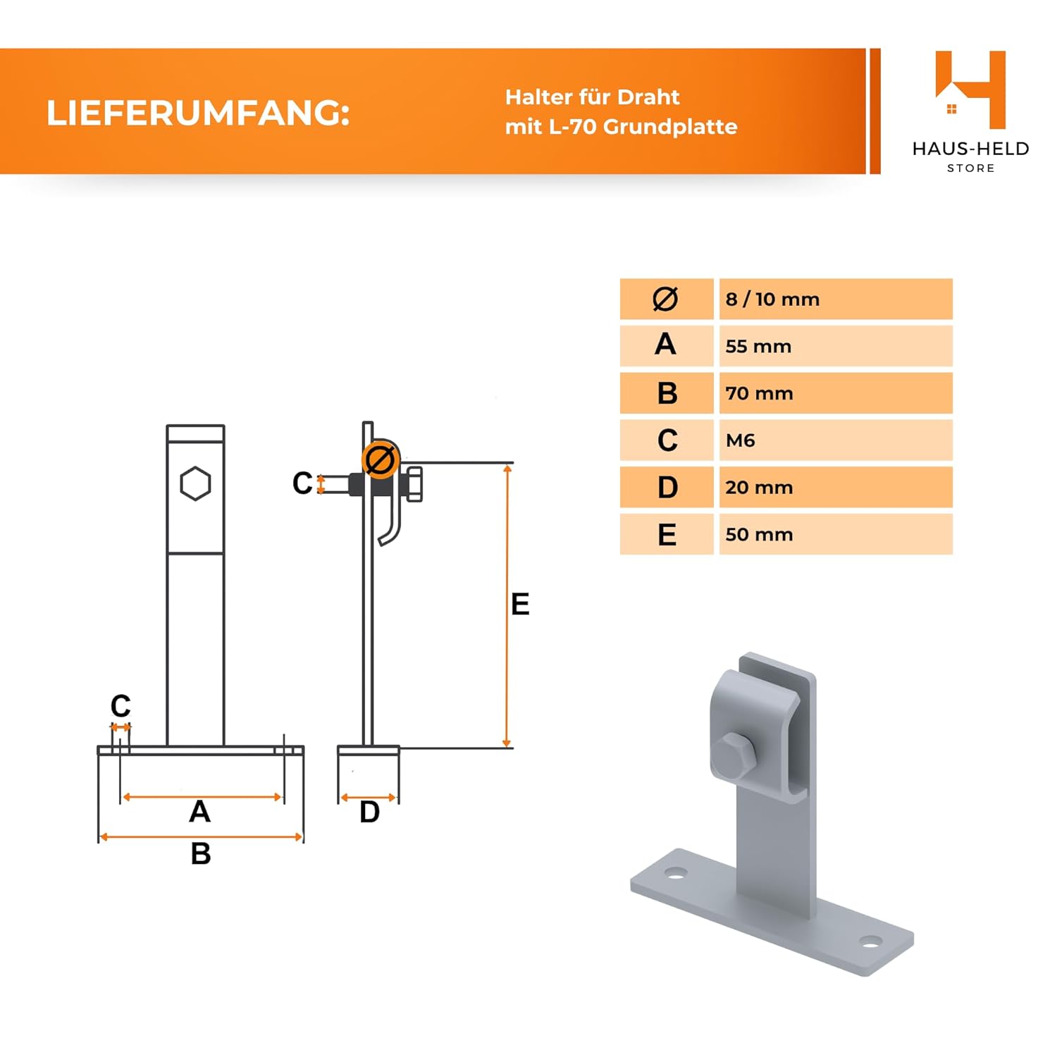 Der Fassadenhalter auf Sockelbasis ist eine zuverlässige Lösung zur Befestigung von Blitzableitern und Erdungskabeln mit einem Durchmesser von Ø 8-10 mm. Dank seiner soliden Konstruktion und der Montage auf einem Sockel eignet sich der Halter ideal für die Verlegung von Installationen an Fassaden, Stahlkonstruktionen, Fundamenten und in Industrieanlagen. Das Produkt sorgt für eine stabile und ästhetische Verlegung der Leitung.