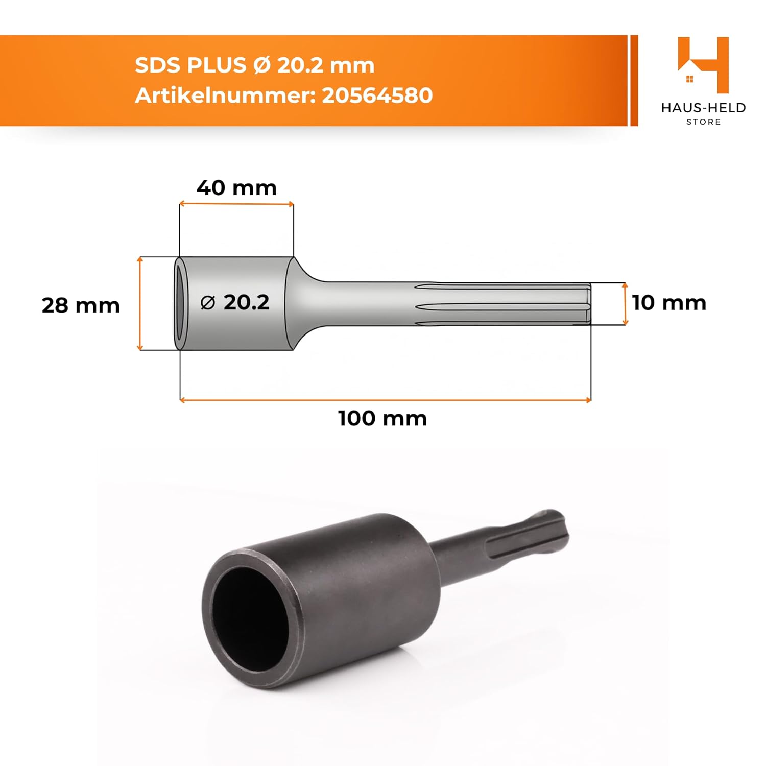 Der Adapter SDS Plus Ø 20 mm ist ein unverzichtbares Werkzeug zum präzisen, sicheren und effizienten Einschlagen von vertikalen Erdungsstäben mit einem Durchmesser von 20 mm gemäß der Norm PN-EN 62561.