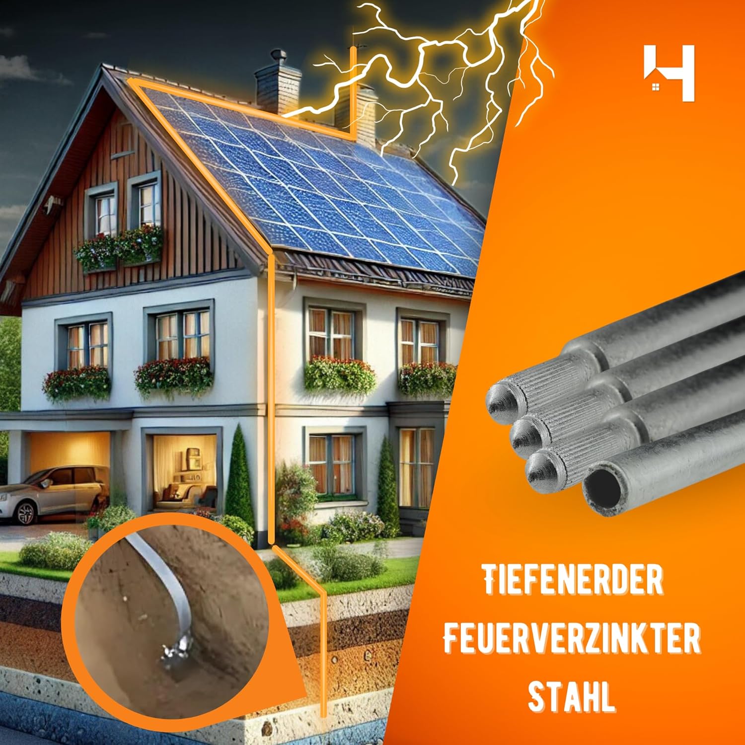 Der vertikale Erdungsstab aus feuerverzinktem Stahl mit einer Länge von 1,5 m und einem Durchmesser von 16 mm ist eine zuverlässige Lösung für lokale Erdungen in Blitzschutz, Elektro und Industrieanlagen.