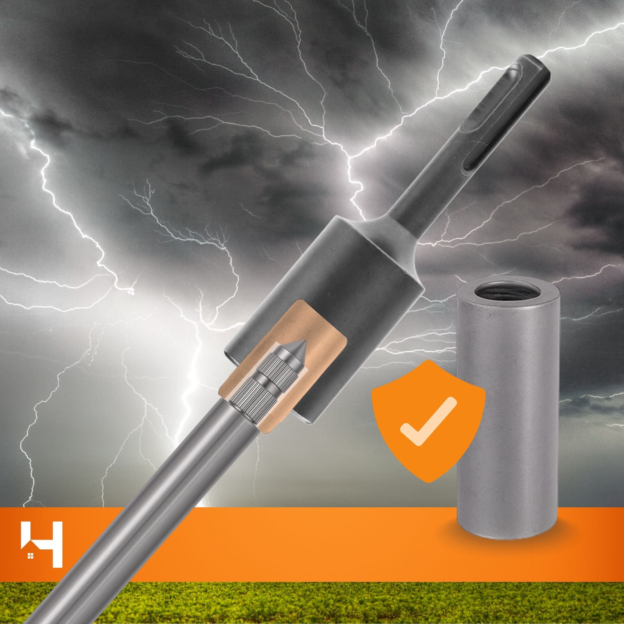 Dzięki wewnętrznej średnicy 16,5 mm, nasadka idealnie współpracuje z większością uziomów odgromowych dostępnych na rynku zapewniając maksymalne przeniesienie energii bez luzów i strat.