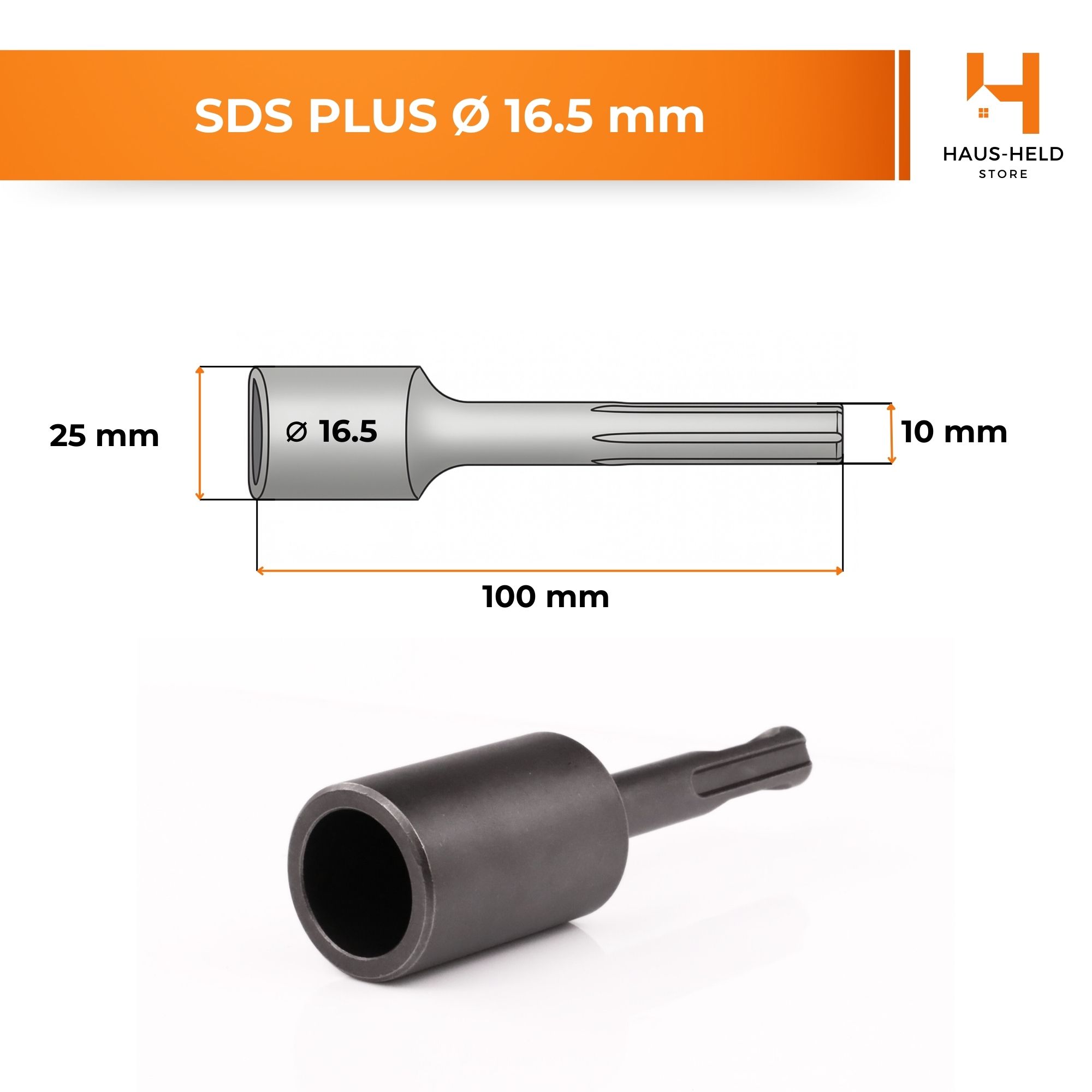 Adapter SDS Plus Ø 16,5 mm to niezbędne narzędzie do precyzyjnego, bezpiecznego i efektywnego wbijania uziomów pionowych o średnicy 16,5 mm zgodnych z normą PN-EN 62561.