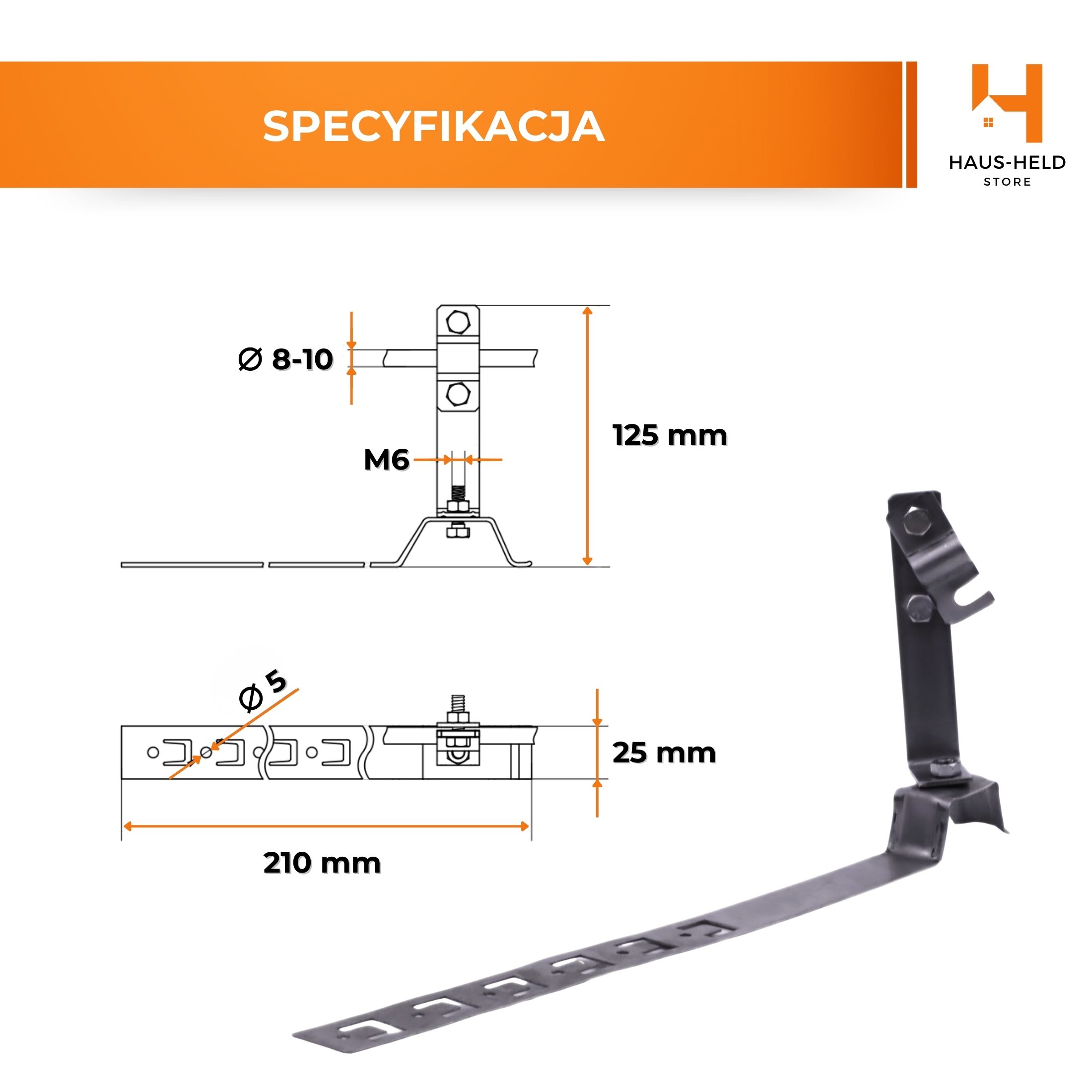 Uchwyt dachowy do drutu Ø 8-10mm 210 x 125 mm