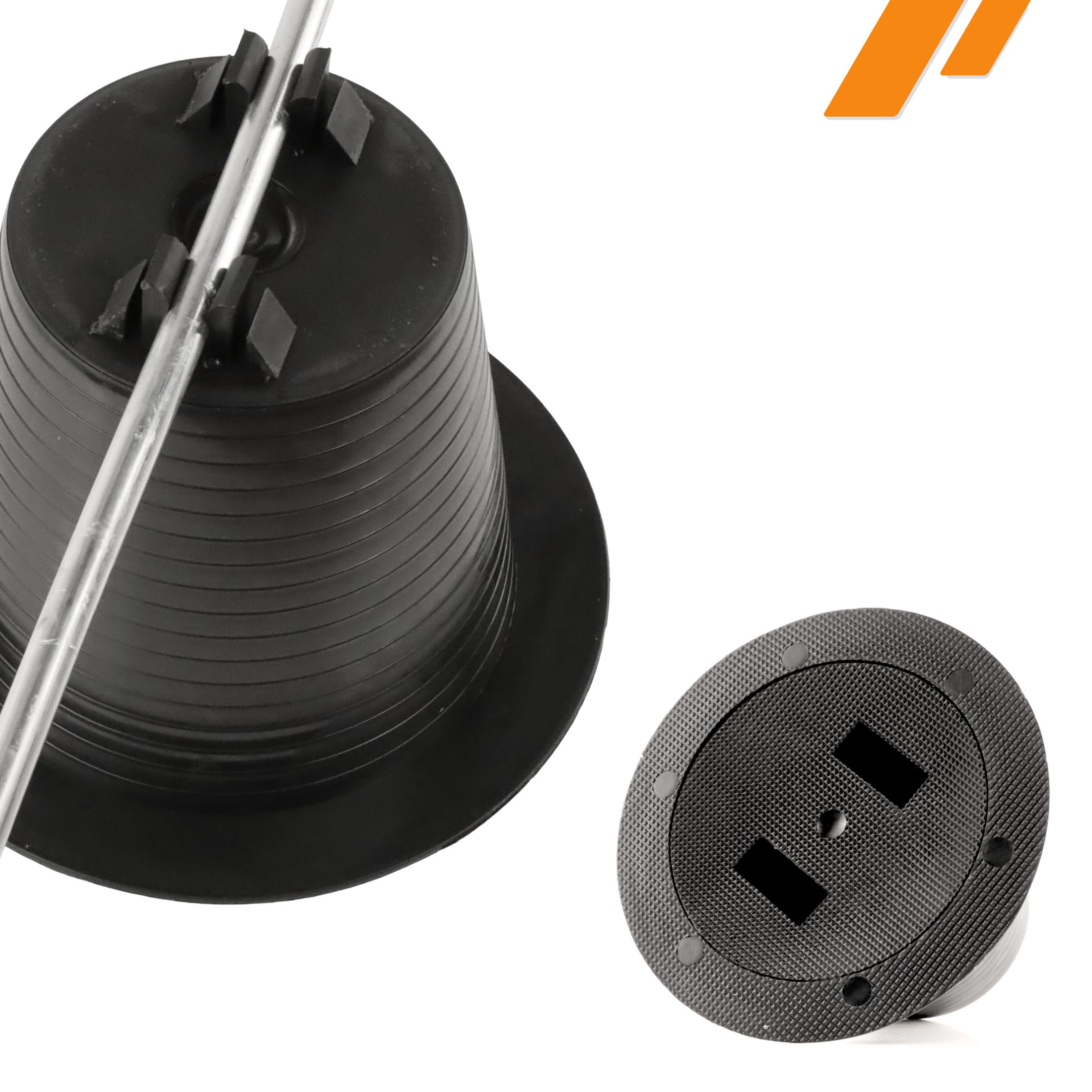 Solidna konstrukcja uchwytu składa się z uchwytu zaciskowego oraz masywnego bloku betonowego chronionego plastikową obudową. Zapewnia obciążenie i stabilizację oraz pewne prowadzenie drutu odgromowego, eliminując jego przesuwanie się nawet przy silnym wietrze czy opadach.