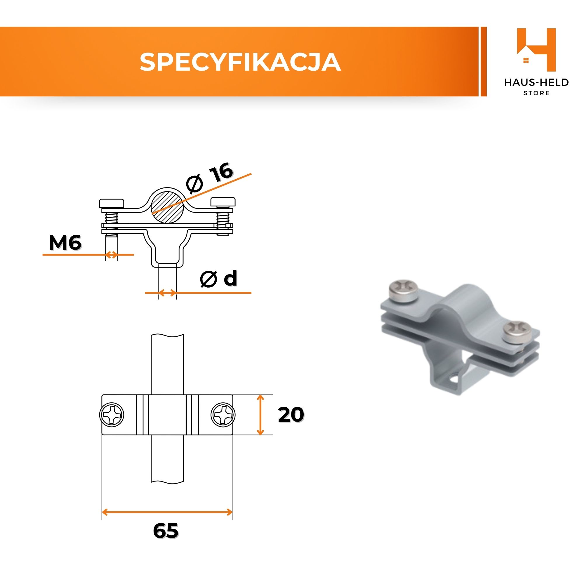 Uchwyt kompatybilny z masztami odgromowymi Ø16 mm oraz elementami systemów odgromowych, takimi jak podstawy masztów, przewody odprowadzające oraz elementy uziemiające, umożliwiając budowę kompletnej instalacji.