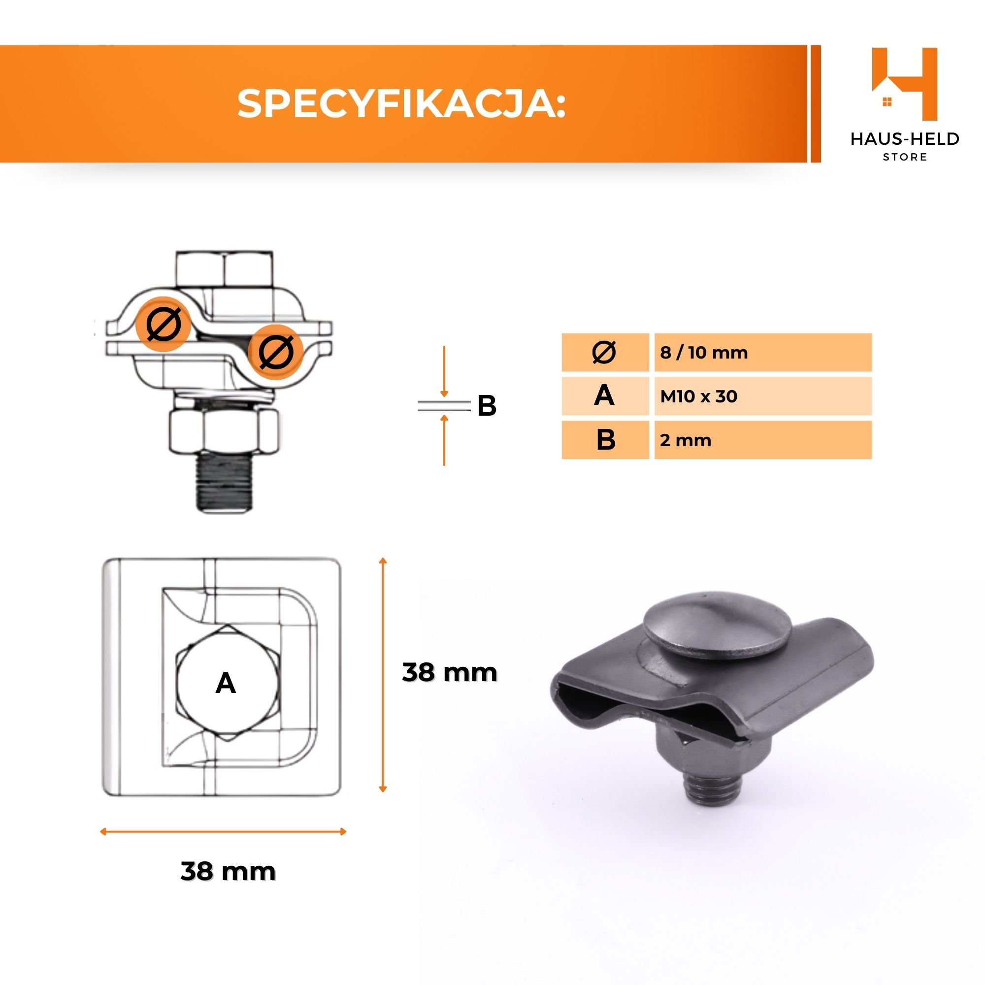 Zacisk wykonany jest z wysokiej jakości stali nierdzewnej V4A, co gwarantuje maksymalną odporność na korozję, czynniki atmosferyczne oraz długotrwałą eksploatację w warunkach zewnętrznych i przemysłowych. Przeznaczony jest dla elektryków, firm instalacyjnych oraz wykonawców realizujących profesjonalne instalacje LPS.